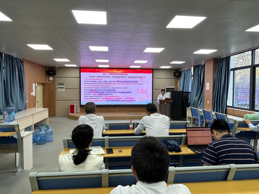 巩建华围绕党的二十届三中全会的重大时代意义、习近平总书记在全会上的重要讲话精髓、全会提出的深化改革新举措,以及全会精神与改革任务的具体实施等四大方面,进行了系统宣讲和深入阐释。他强调,此次全会是在我国以中国式现代化路径全力推进国家强盛与民族复兴的关键历史节点上召开的一次重要的会议。习近平总书记的重要讲话,深刻回答了进一步全面深化改革、推进中国式现代化的一系列方向性、根本性重大问题。全会通过的《决定》,是党的历史上又一重要纲领性文献。全院师生员工要深刻领悟“两个确立”的决定性意义,不断增强“四个意识”、坚定“四个自信”、做到“两个维护”,深刻认识党的二十届二中全会以来党和国家事业取得的重大成就,从中汲取前进的力量和信心。