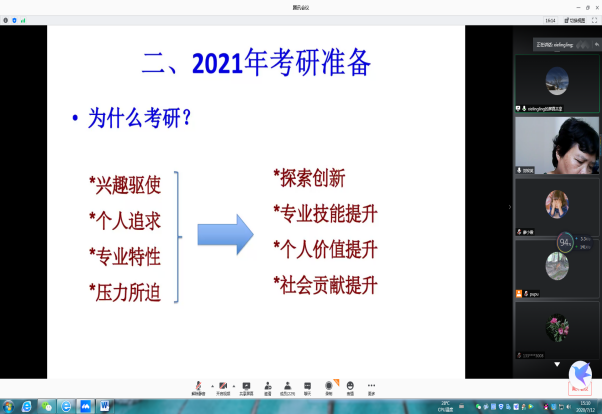 7月12日,公海gh555000aa线路检测在腾讯会议室召开2020年考研总结表彰暨2021年考研动员大会。参加会议的有公司领导、各系的正副主任、全体班主任、全体辅导员以及2017级、2018级、2019级有考研意向的同学和2020届考研录取的同学,参会人员250多人。会议由公司党委副书记刘宏英主持。