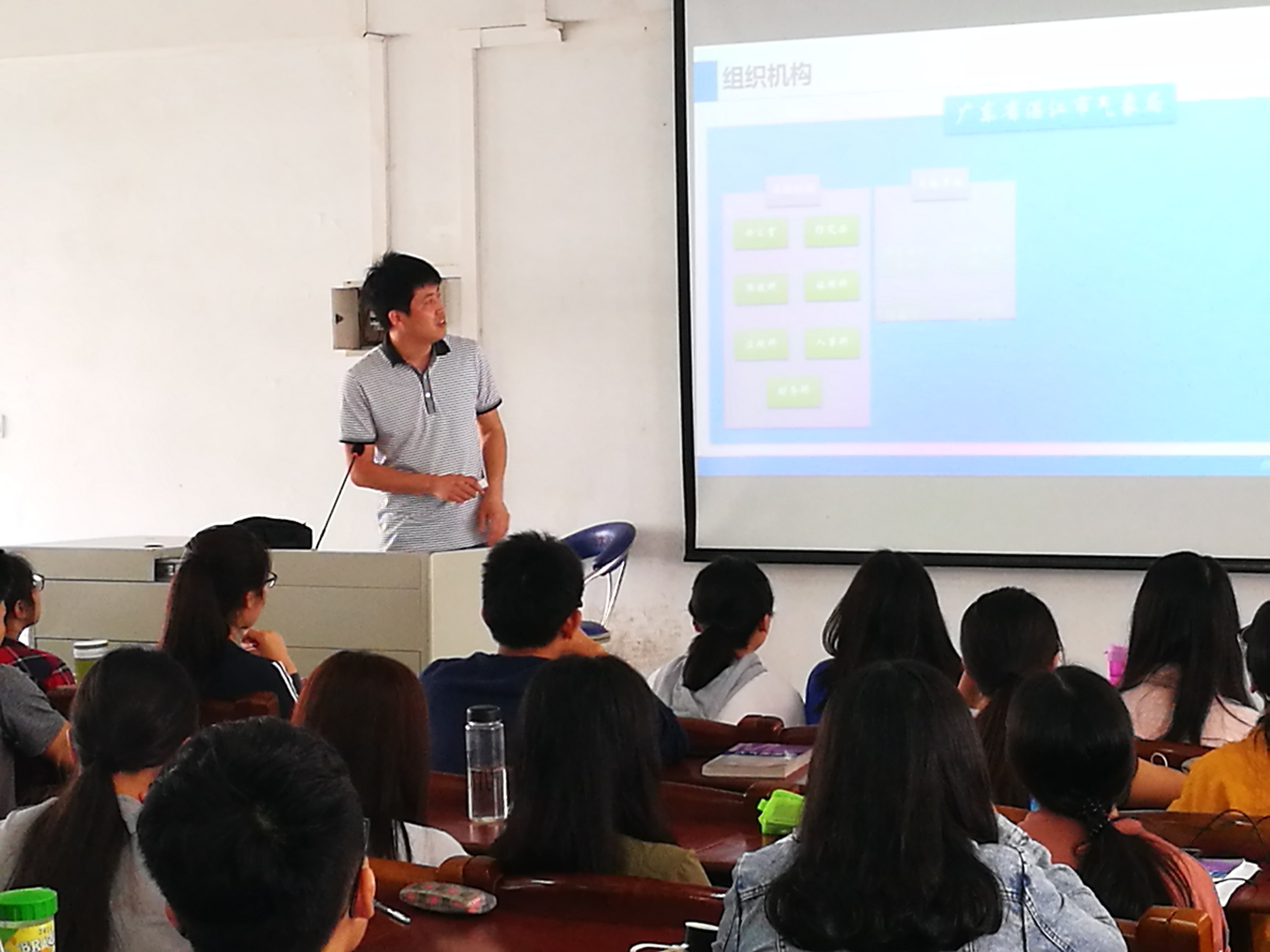 员工黄克鑫从航空气象观测及职业素养两个方面讲解,具体阐述了目前各地民航气象观测所采用的一些探测技术和技术手段、观测员的工作以及航空气象技术革新,并就工作经验介绍了目前航空气象急需的人才类型及其所需要具备的职业素养。员工张仲着眼于气象台预报及气象局招聘条件,结合实例讲解了气象会商的流程及注意事项,并就校园学习和生活给在校生提供了具有建设性的建议。