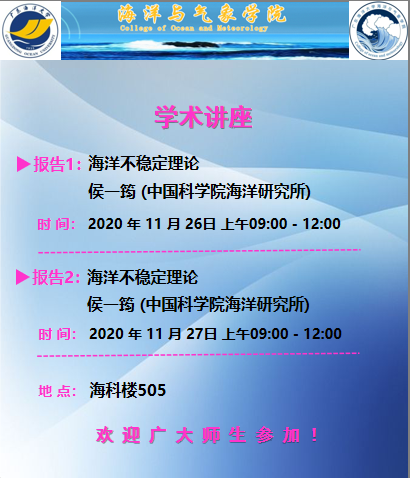 中国科公司海洋研究所侯一筠研究员应邀作学术讲座(预告)