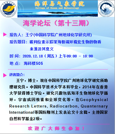 中国科公司海洋研究所侯一筠研究员应邀作学术讲座(预告)