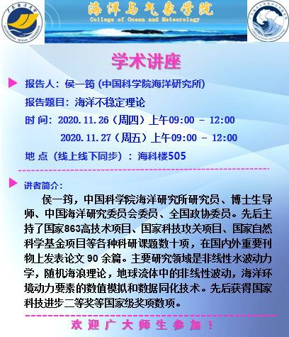 中国科公司海洋研究所侯一筠研究员应邀作学术讲座(预告)