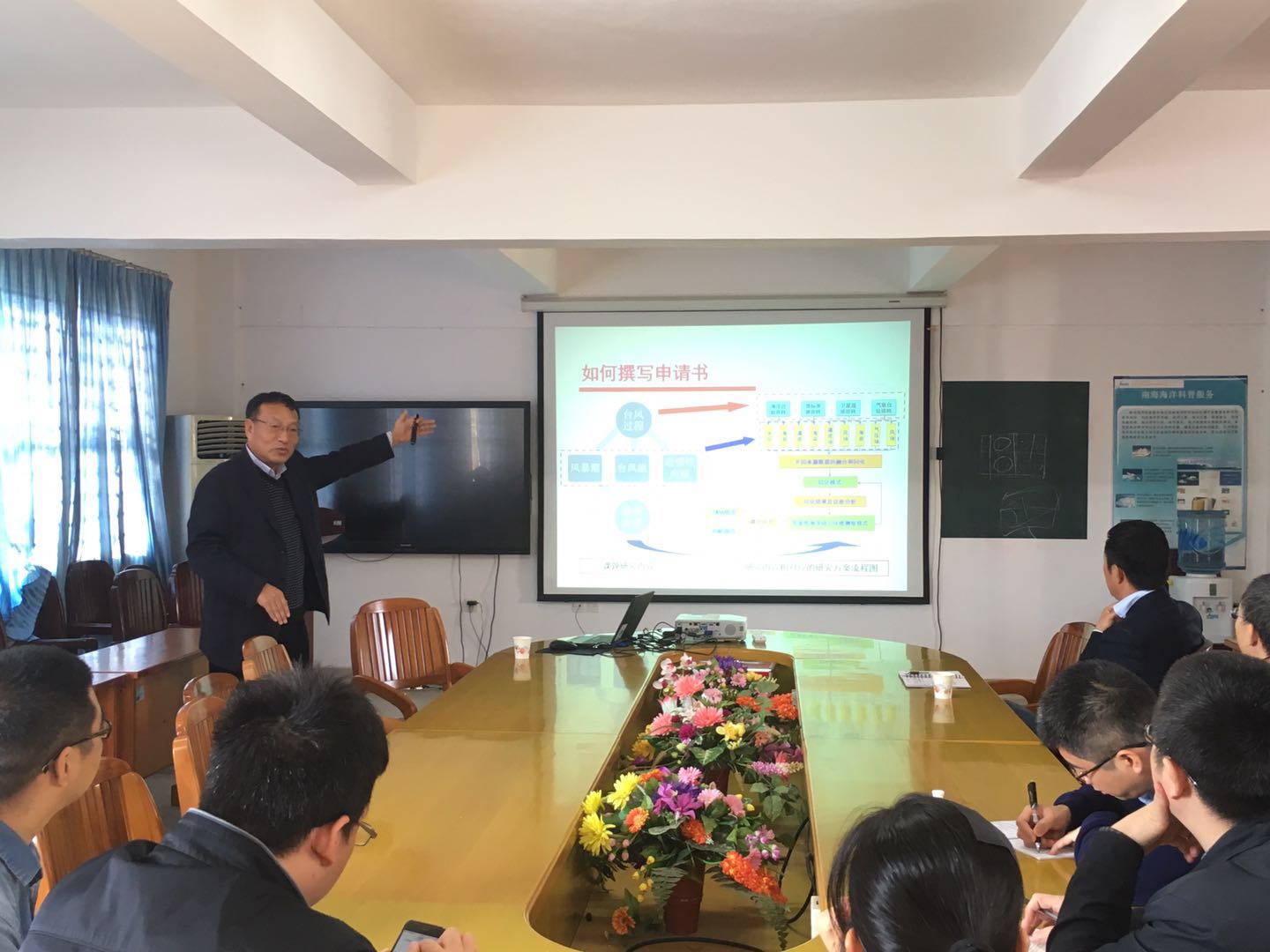 1月16日上午,公海gh555000aa线路检测在海博楼会议室为年轻教师开展了国家自然科学基金撰写指导讲座。中科院海洋所侯一筠研究员做了专题指导讲座。公海gh555000aa线路检测的年轻教师参加了讲座,讲座由张书文经理主持。