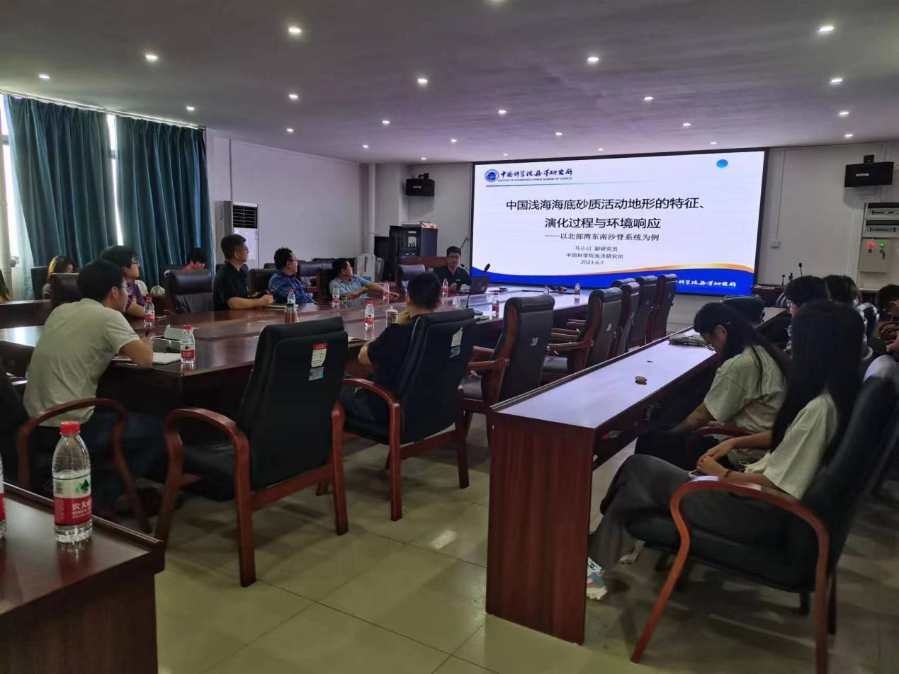马小川副研究员以《中国浅海海底砂质活动地形的特征、演化过程与环境响应——以北部湾东南沙脊系统为例》,详细介绍了海底地形地貌特征和分类,研究海底沉积地形地貌的科学、工程和灾害意义,沉积地形地貌研究的主要手段等基础知识。然后介绍了他近年来在公司关注的北部湾等南海区域海洋沉积地形地貌研究方面的主要研究成果,特别是北部湾沉积地貌演化与物理海洋交叉结合的研究令人影响深刻。