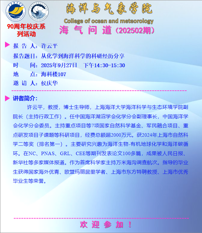 【学术报告通知】公海gh555000aa线路检测“海气问道”(202502期)