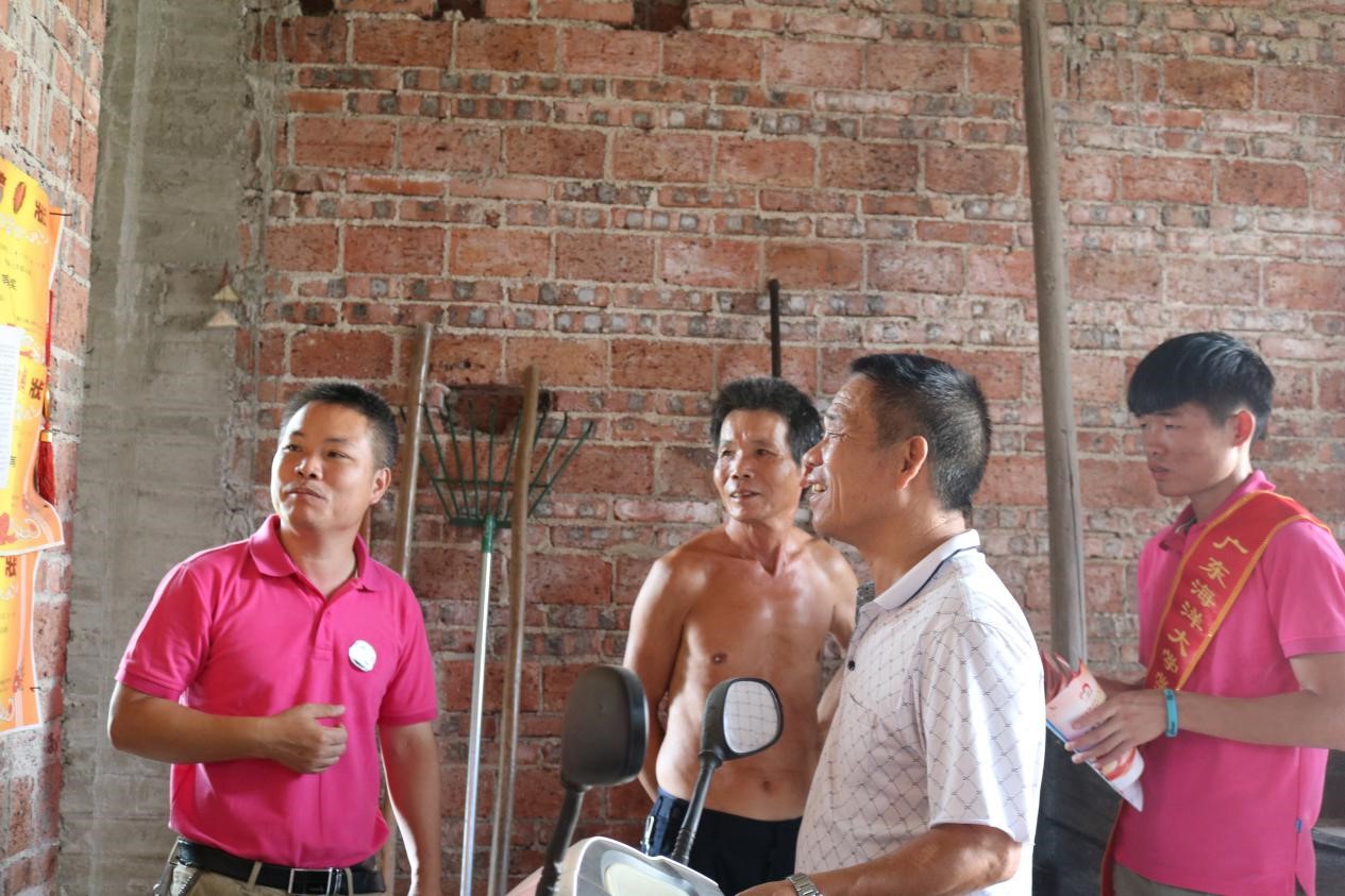 7月17日,在雅塘镇百丰山村村民家中,队员与村民交流详谈国家精准扶贫政策、国家资助和助学贷款政策,了解该家庭的生活情况。爱的传承队员 李殷楠 摄