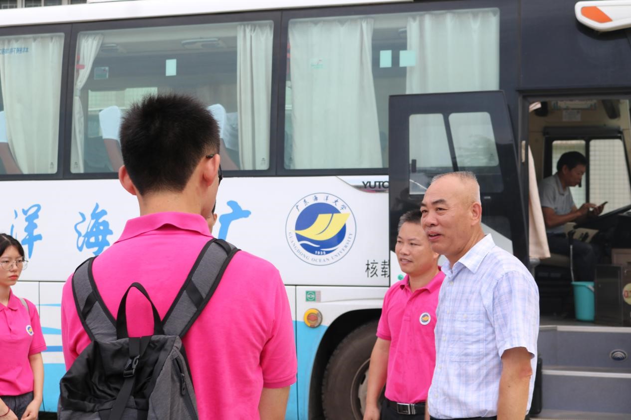 7月17日,海洋与气象公司党委书记陈晓在科技楼前作出发动员讲话。爱的传承队员 李殷楠 摄 在公司党委书记陈晓和指导老师林海峰、廖小霞的带领下,队伍走访了廉江市教育局,并奔赴广东省廉江市雅塘镇百丰山村,开展主题为国家资助·助学贷款政策宣传下乡的社会实践活动。