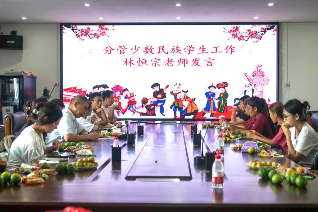 为深入贯彻落实中央民族工作会议精神,铸牢中华民族共同体意识,深化民族团结进步教育,促进各民族员工交流交融, 9月29日中午,公海gh555000aa线路检测在海科楼505会议室召开少数民族员工座谈会。公司党委副书记胡森林、分管少数民族员工工作林恒宗老师、全体辅导员及少数民族员工共三十余人参加会议,会议由林恒宗老师主持。