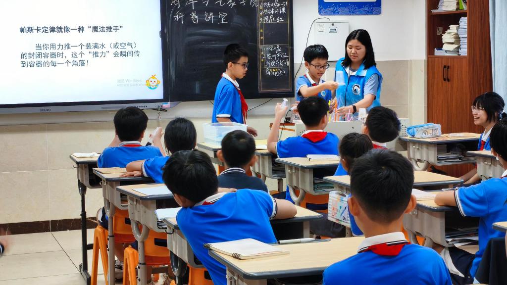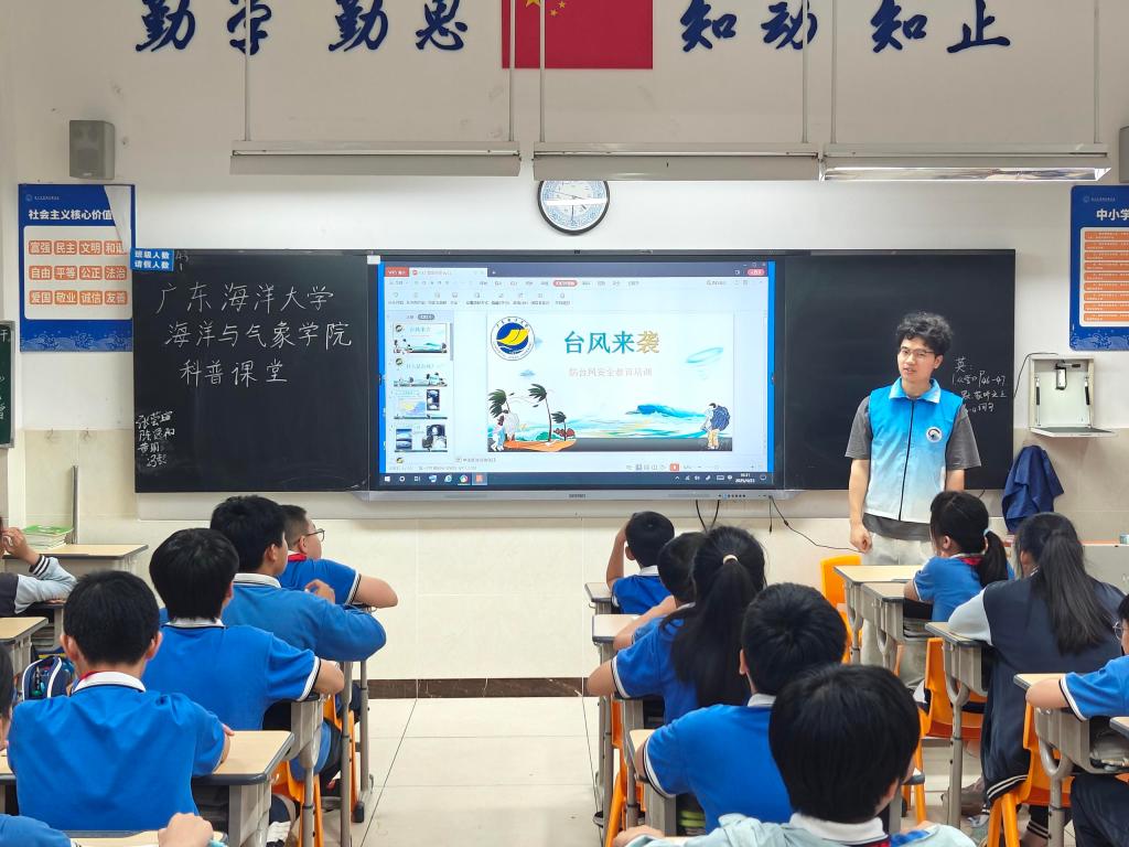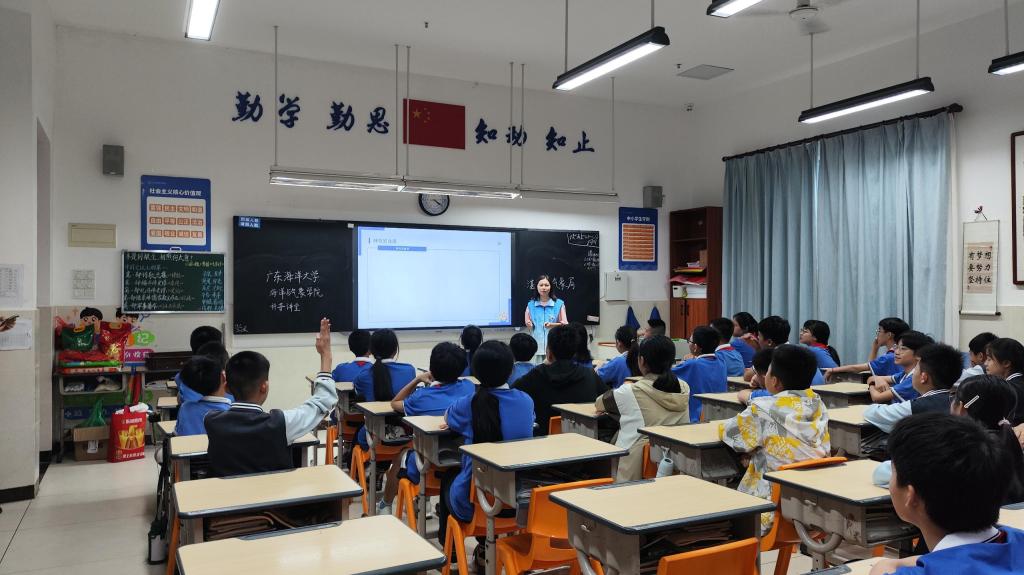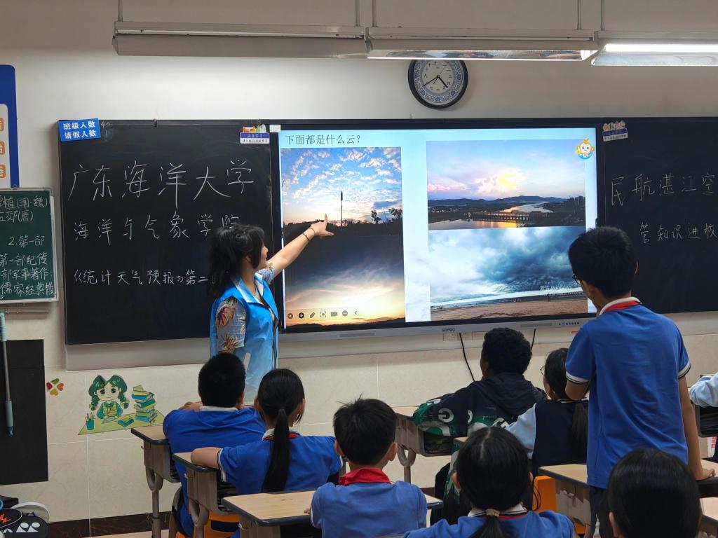公海gh555000aa线路检测团委组织30余名老员工志愿者走进湛江市雷阳实验公司,开展“海洋大气”科普进校园活动。通过科普讲堂、实验互动体验、海洋知识问答、天气符号知多少等多种形式,为五年级和六年级共630余名小员工带来沉浸式科学启蒙,助力“双减”政策下科学教育提质增效。