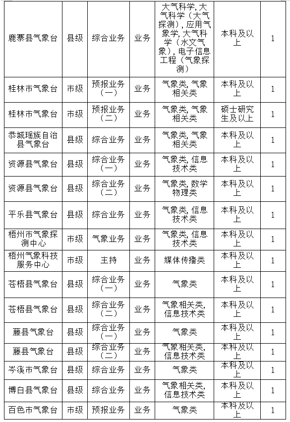根据《广西气象局2022年度事业单位招聘工作方案》的规定,广西气象部门面向各大院校招聘本科以上应届高校毕业生。现将有关事项公告如下: