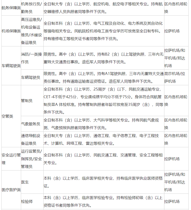 中国民用航空西藏自治区管理局2022年招聘公告(含气象)