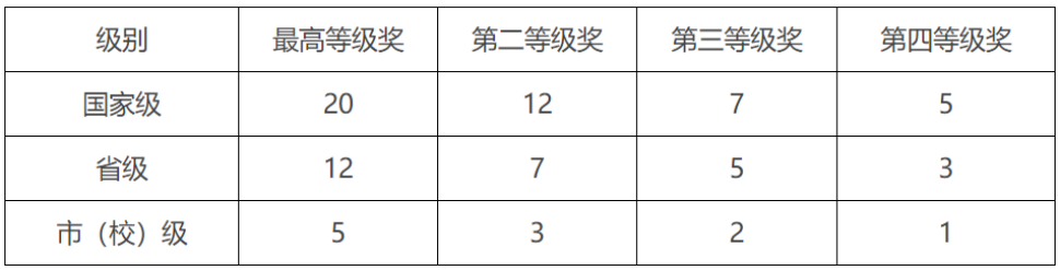 ① 课外学术科技竞赛(获奖截止日期为2021年8月31日)。该项分为Ⅰ、Ⅱ、Ⅲ类,Ⅰ类只限“互联网+”“挑战杯”“创青春”三项比赛;Ⅱ类为政府部门、国家一级学会主办的学科竞赛和中国高等教育学会列入《全国普通高校学科竞赛排行榜》的学科竞赛项目;Ⅲ类为行业协会主办的学科竞赛项目。