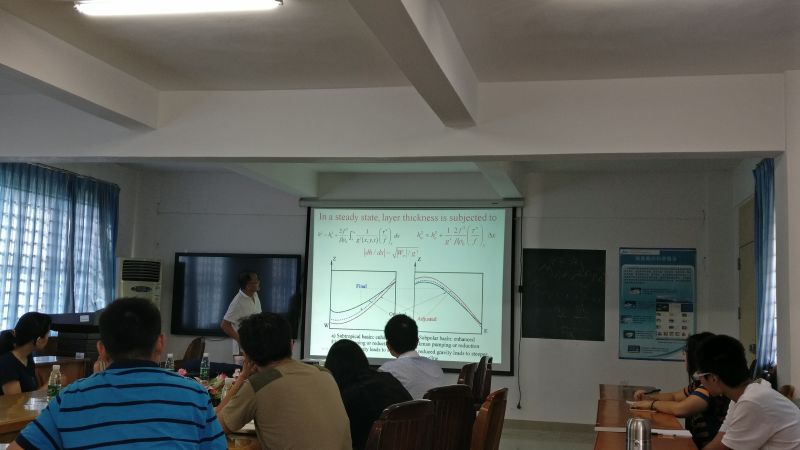 黄瑞新教授10月31日的报告带来了海洋气候变化中的绝热运动和等密层分析的最新成果。他指出,海洋气候变化中90%的过程是绝热的,对于非绝热过程,也可以通过改变约化重力或水体体积后,由绝热运动过程描述;在等密层分析中,特别强调了层厚的影响。11月1日,针对青年教师和研究生同学,瑞新教授以自身及其他著名海洋学家的为例,就如何开展创新性的科学研究、成为优秀的海洋学者做了生动、细致的指导报告,他主张,要把海洋记在脑子中,融化在血液里,随时随地思考科学问题,鼓励青年学者敢于提出问题,做真正创新性的工作。