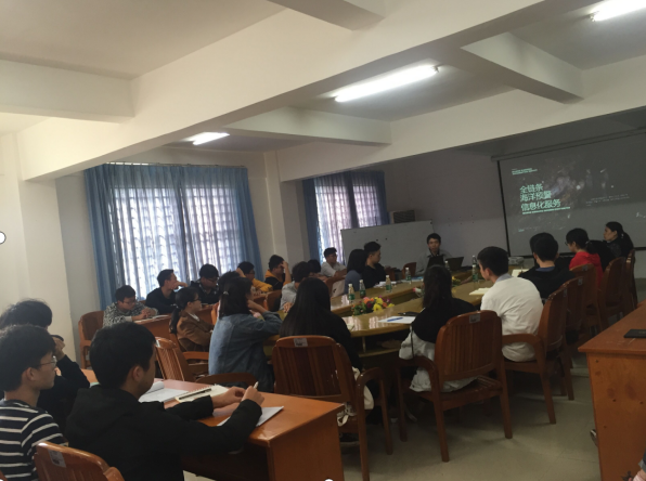 2019年11月30日,公司员工广东海启星海洋科技有限公司海洋事业部经理沈煜帆于 海博楼210会议室作“海洋科学应用实践经验分享”学术报告。讲座由谢玲玲教授主持,公司部分研究生和本科生参加。