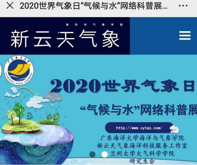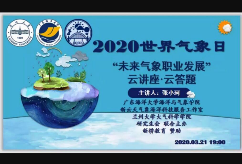 3月23日,是第60个世界气象日。为纪念世界气象组织成立,广泛宣传气象工作,提升对气象研究兴趣,3月20至21日,公海gh555000aa线路检测新云天气象海洋科技服务工作室与兰州大学大气科学公司研究生会通过互联网联合举办了三场主题“云活动”。来自公司及兰州大学、南京信息工程大学、中山大学等高校的老师和员工近1200人次参加了各项活动。活动得到公司党委宣传部海浪传媒、兰州大学安特莫斯俱乐部等部门和网易网站、新桥教育等单位的大力支持。