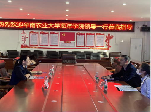 12月18日,华南农业大学海洋公司经理秦启伟带队来公司调研交流。公司经理谢玲玲、副经理郑少军、教师代表李强参加了会议。