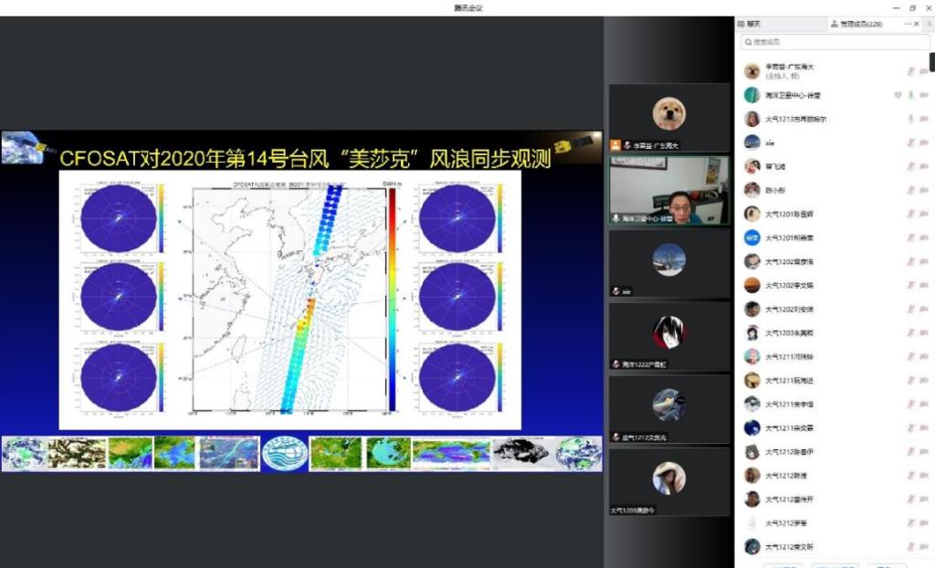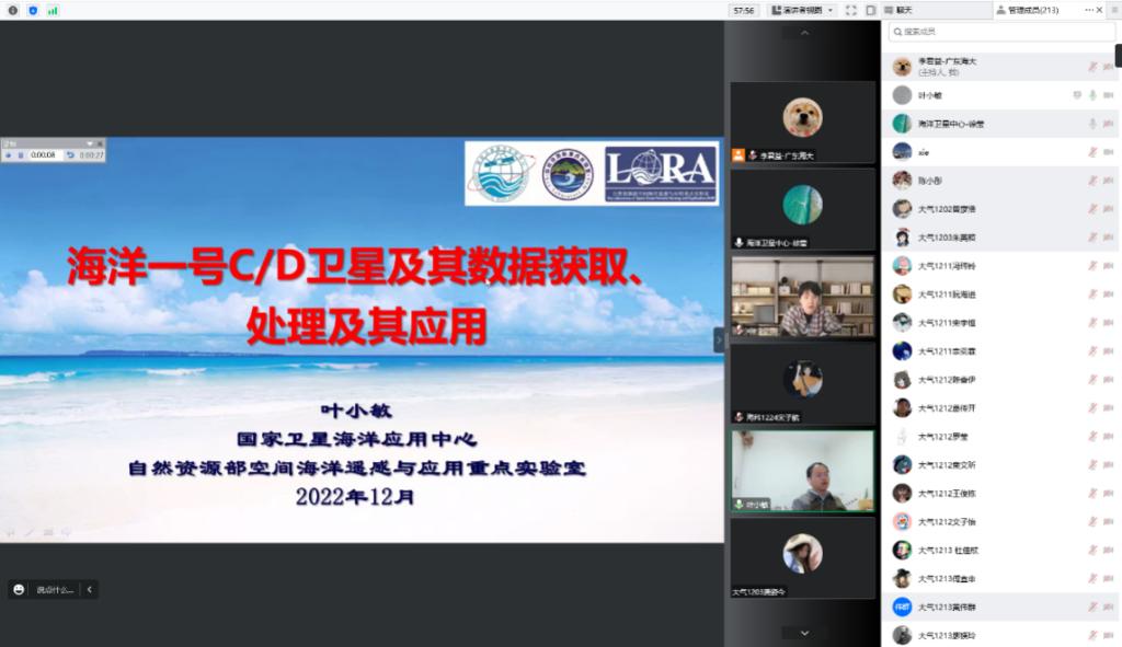 2022年12月5日上午,海洋气象公司于腾讯会议平台开展线上《研究生联合培养系列讲座》,邀请联培基地研究生导师,国家卫星海洋应用中心徐莹处长、叶小敏研究员为联合培养研究生及在校本科生做我国海洋卫星遥感监测及应用方面的工作介绍。