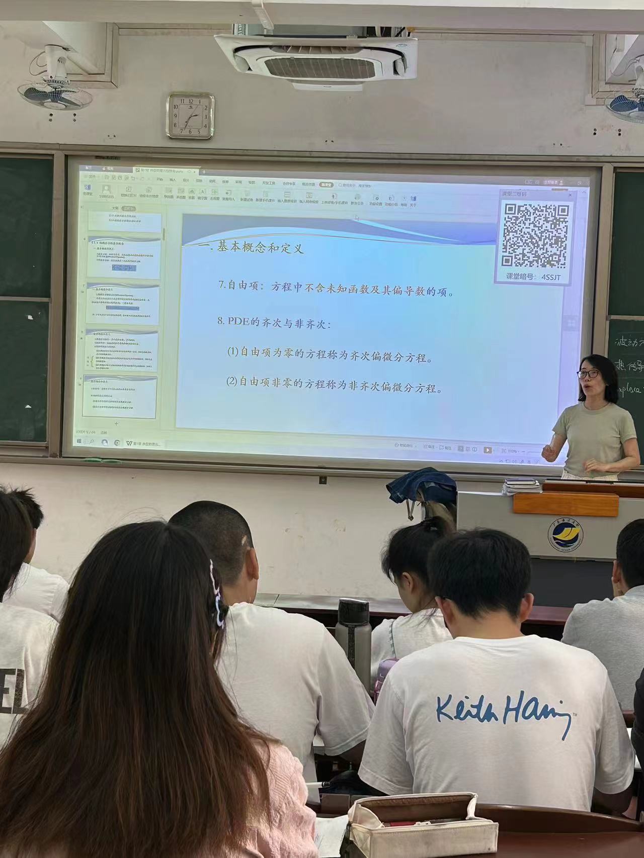 第一场观摩课由获得公司第14届教学质量优秀奖获得者—— 于杰老师主讲,讲授课程为专业基础课--《数学物理方法》,授课内容为“偏微分方程的概念及波动方程的推导”。于老师充分运用了问题导入式、启发式和案例式等教学方式,详细讲解了“偏微分方程的阶、线性与非线性、齐次与非齐次的定义和概念”以及“由一维弹性弦的自由振动如何推导波动方程”等知识点;同时,将思政内容融入教学过程中,激发员工学习兴趣;并借助雨课堂等授课平台和资源,激发员工的学习兴趣,提高课堂的教学效果,有效展示了线下、线上混合教学模式,并在课程成绩评价中,充分结合到过程学习的重要性进行评价。