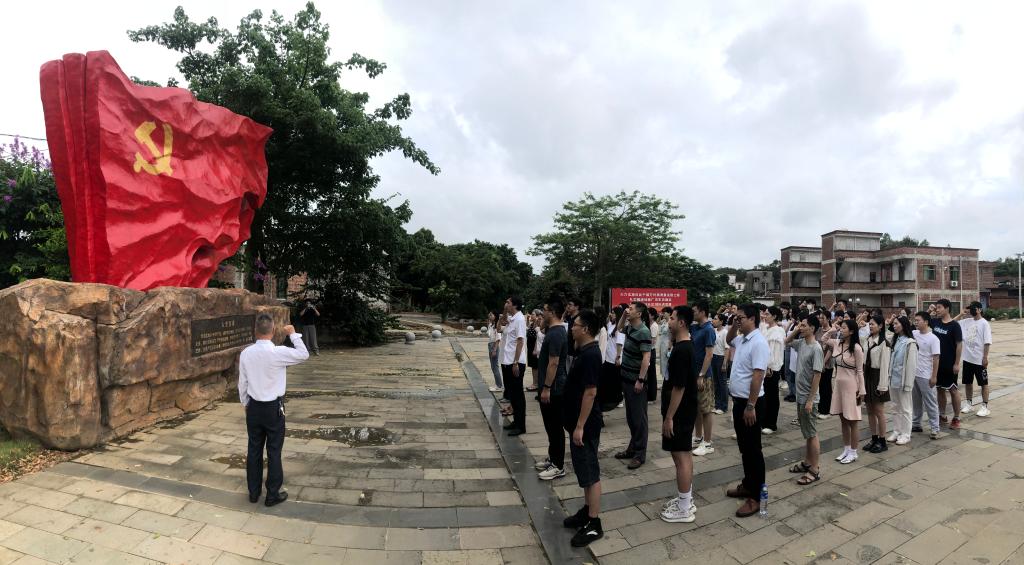坡头泮北红色革命教育基地是中共广东南路特委旧址、广东南路人民抗日解放军成立地,中共南路特委组织和领导南路人民抗日救亡运动的重要据点。在泮北村红色革命教育基地纪念雕塑前,在公司党委委员林海峰同志的带领下,面对鲜红的党旗,全体党员肃立,高举右手,在铿锵的誓言中重温入党誓词感受初心使命,更加坚定为党和人民伟大事业奋斗终生的决心。