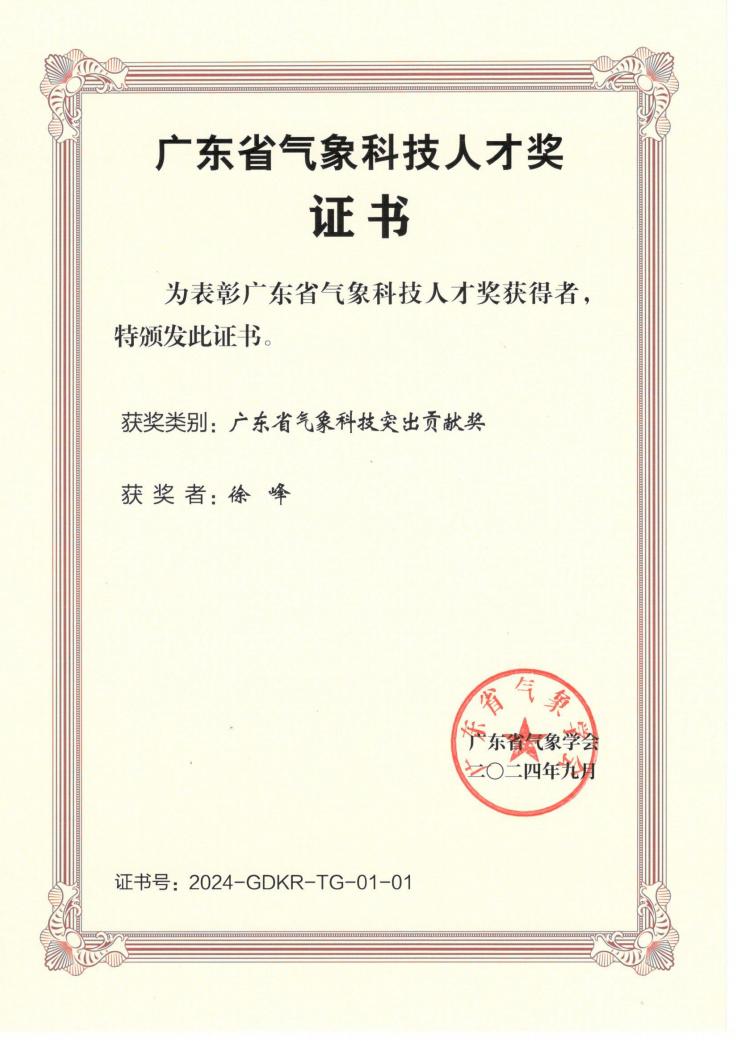 近日,广东省气象学会颁布了2024年度“广东省气象学会气象科技奖”评奖结果,公布了突出贡献奖、科学创新奖、技术进步奖等荣誉奖项。公司徐峰教授凭借卓越的科研实力、显著的学术贡献、深厚的教育底蕴,斩获2024年度“广东省气象科技突出贡献奖”。
