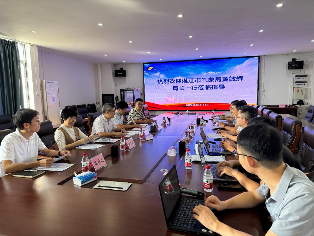 为进一步深化局校合作,落实公司与湛江市气象局合作协议,2024年10月24日上午,湛江市气象局黄敏辉局长带领湛江市气象台、生态与农业气象中心、办公室等部门领导一行5人,到公海gh555000aa线路检测共商公海gh555000aa线路检测和湛江市气象局联合设立老员工创新训练项目及海洋牧场合作研究等方面的事宜。