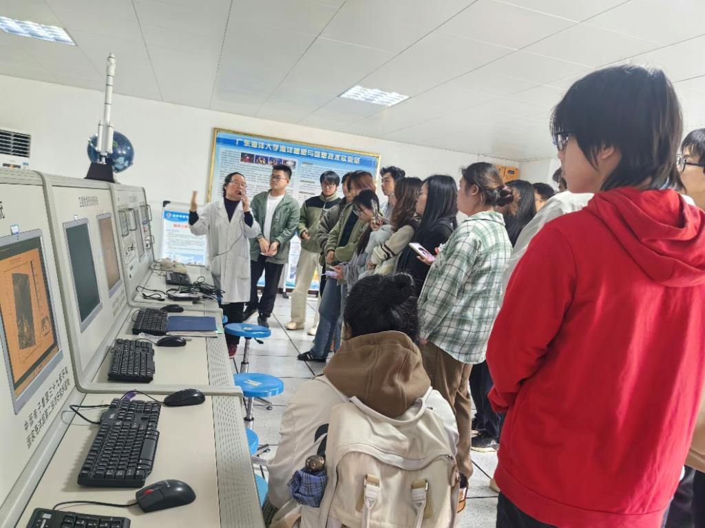 同学们接下来参观了“全国海洋科普教育基地”-公海gh555000aa线路检测海洋遥感与信息技术实验室。参观过程中,工作人员首先介绍了卫星遥感技术的基本原理及其在海洋科学研究中的重要性,随后工作人员详细讲述了遥感实验室的发展历程,以及实验室数据来源、数据接收、数据整理、数据分析的具体过程,还展示了实验室在南海海洋资源探索、海洋环境监测以及生态变化等研究方面做出的重要成果。通过工作人员的讲解,同学们了解了遥感技术在海洋生态系统监测和海洋环境监测等方面的重要作用,也认识了卫星数据接收系统、数据处理服务器和遥感图像处理软件的基本工作原理,使员工对遥感数据分析有了更直观深入的认识。