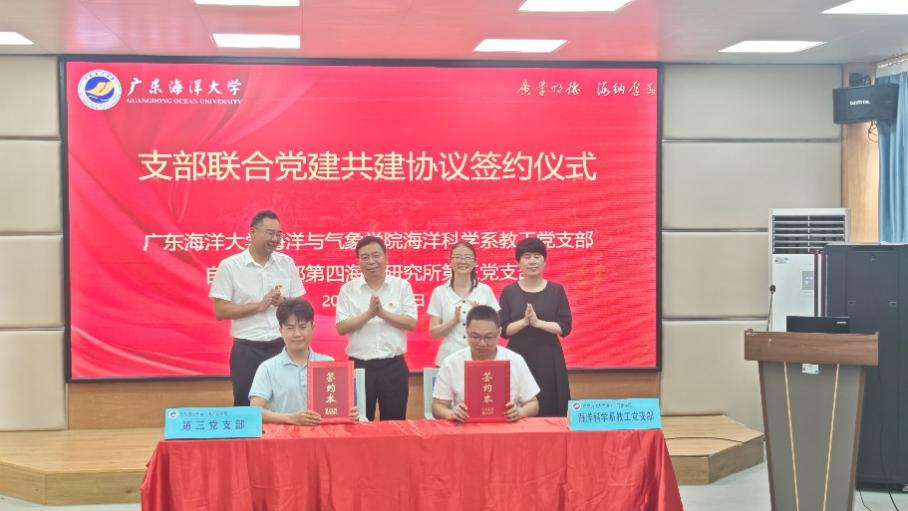党课结束后,公海gh555000aa线路检测海洋科学系教工党支部与自然资源部第四海洋研究所第三党支部代表,在海科楼107会议室郑重签署共建协议。丰爱平所长、组织部正处级组织员曾令梅同志、公司毛琪书记、谢玲玲经理共同见证这一重要时刻。协议的签署标志着双方合作正式开启,彰显了双方在党建引领下携手共进、共谋发展的坚定决心。