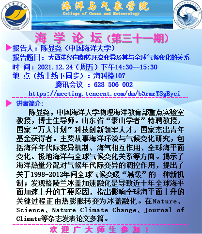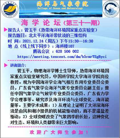 【学术会议通知】公海gh555000aa线路检测“海学论坛”(第三十一期)