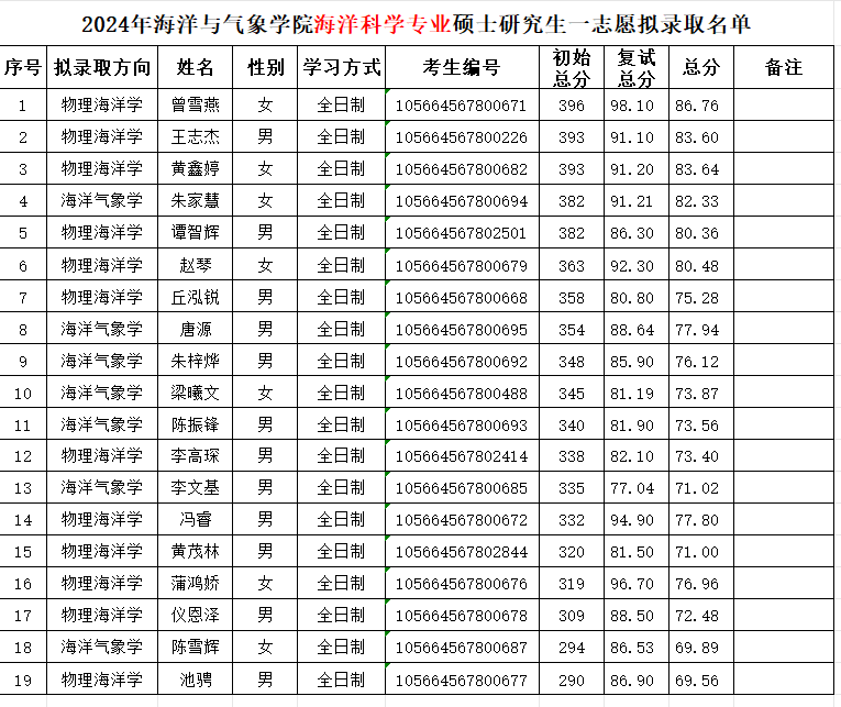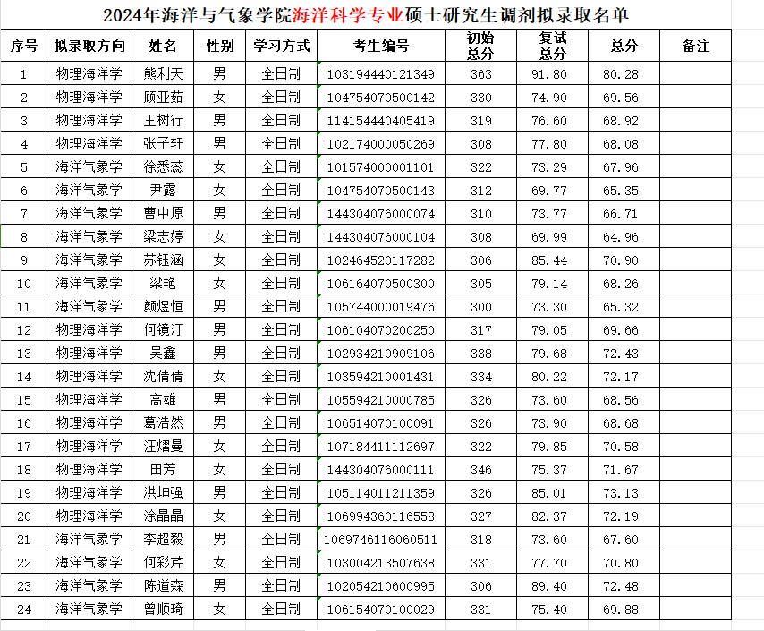 现将公海gh555000aa线路检测海洋科学专业2024年硕士研究生一志愿及调剂拟录取员工名单予以公示,公示期为3个工作日,即4月26日-4月28日。公示期内如对结果有异议,可以书面形式向公司予以提出。