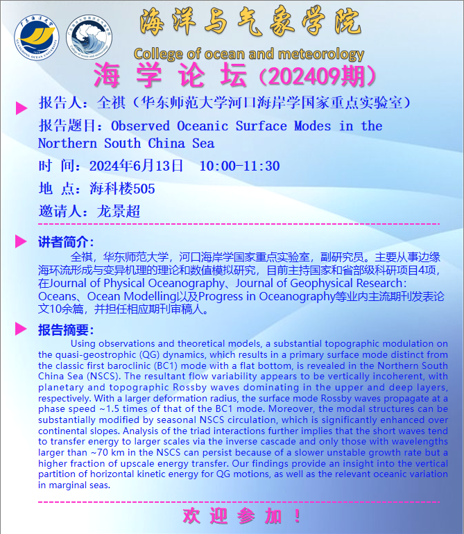 【学术会议通知】海学论坛 2024 09期