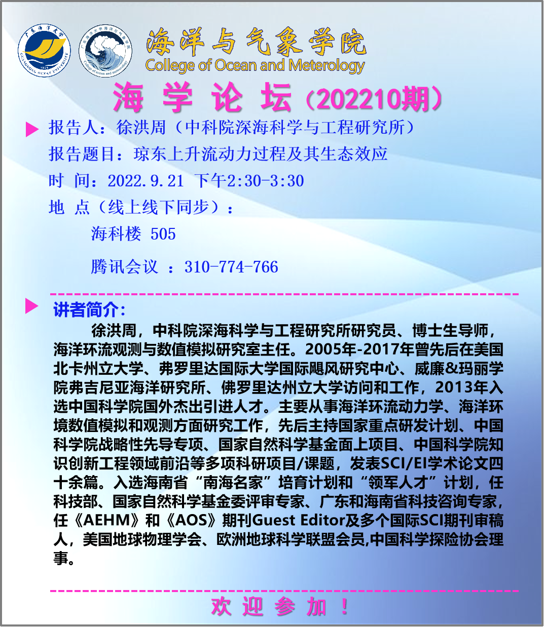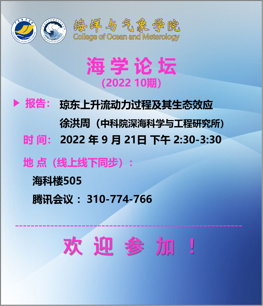 【学术会议通知】海学论坛 2022 10期