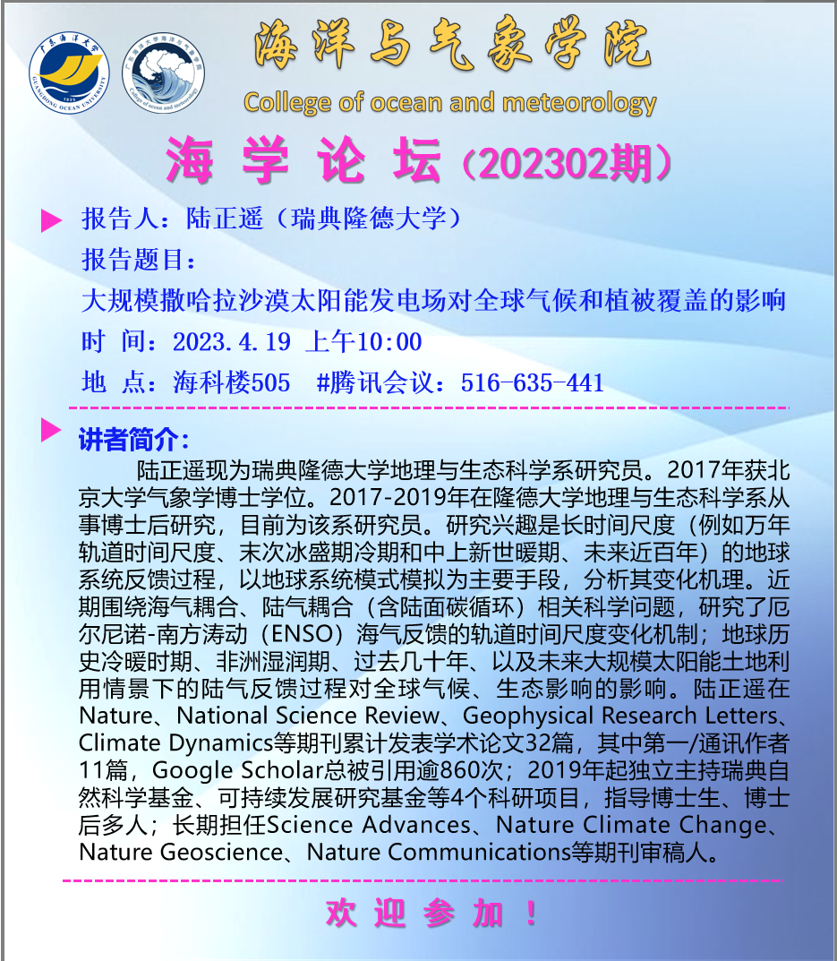 【学术会议通知】海学论坛 2023 01期