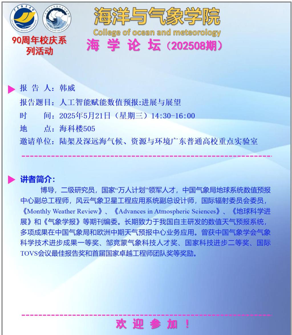 【学术会议通知】公海gh555000aa线路检测“海学论坛”(202507期)